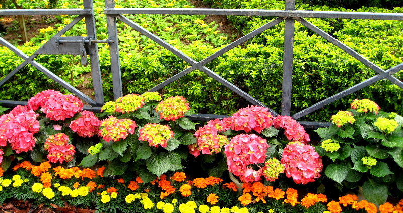 公園の歩道脇には、手入れされた花壇があり、美しさと清らかさを醸しだしている。