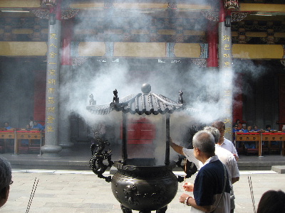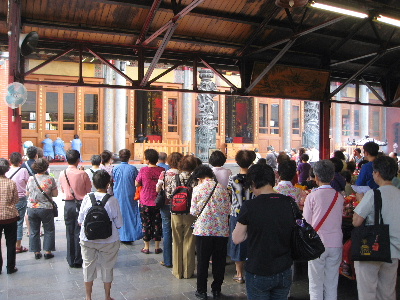 行天宮にお参りした。ちょうど読経の時間で、大勢の人がお参りされていた。