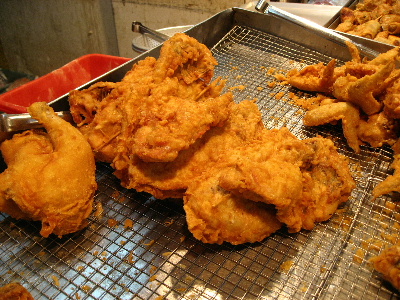 食料品・衣類・雑貨なんでもあります。このフライドチキン、グローブ程の