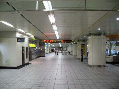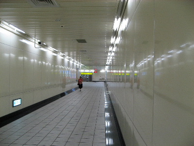 地下通路の天井・壁・床どれも美しく、ゴミ一つ落ちていません。改札口前のコンコース