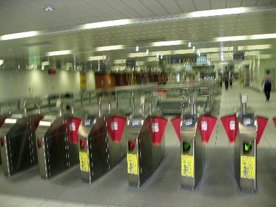 改札口のカードチェッカーにカードを当てると、運賃と残金が表示されます。1乗車20元