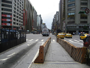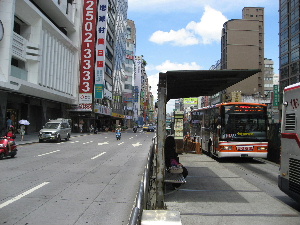 バスは道路中央のバス専用レーンを走っています。だから道路幅は広いです