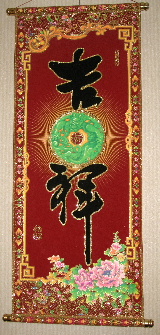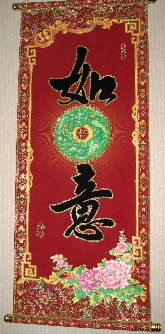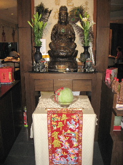 玄関を入ったところから、仏像や飾り物が一杯です。「吉祥」「如意」(めでたい兆しが