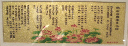 「衆流不俗」と添え書きされた墨書と「般若波羅蜜多心経」の額縁.