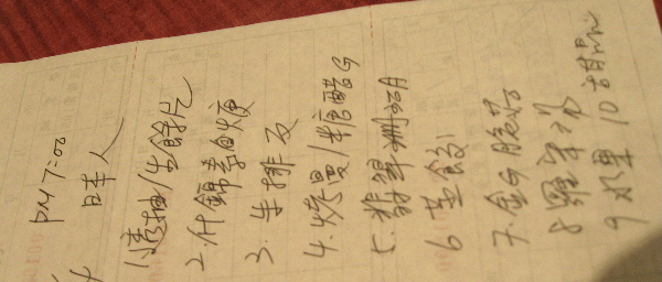 本日のメニュウを書いてもらった、全部で10品.