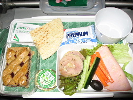 久しぶりのフライト、よいお天気で気持ちがいい。まず機内食は、お昼は和食