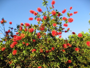 お掃除用のブラシみたいなお花の木、陽射しに輝いて綺麗。 .