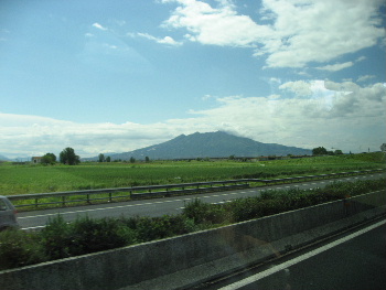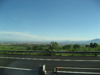 途中のドライブイン。高速道路からは、紀元前に火山灰で、ポンペイを埋め