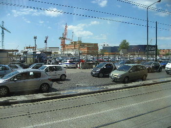 市街地に入ると、道路の中央には路面電車が走り、車がごったがえす