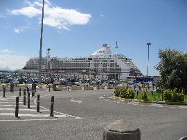 港に着いた。世界周遊の豪華客船が 6隻も入港している。1隻乗客1000人として