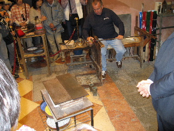 店内に入った所で、実演を見せてくれる、熟練工の腕にかかると、あっという間に・・.