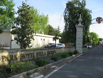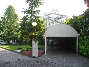 ベネチアの北、トレヴィソの街 にあるホテル。広大な庭園 を持つのはいいが、門を入り