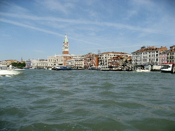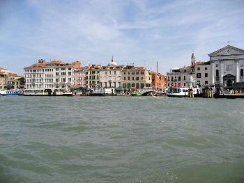 ボートから見た陸地の建物は、水の中に浮いているように見える。ドゥカーレ宮殿