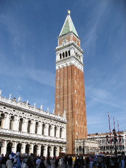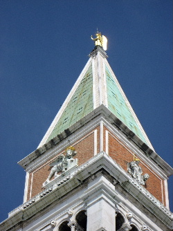 高さ96.8mの鐘楼、ベネチアを一望できる。頂上には、ガブリエル大天使像が飾られ