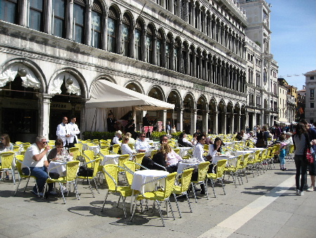 広場には老舗のカフェテラスがあり、のんびり、景観を楽しめるようになっている
