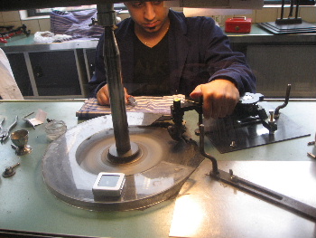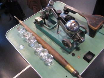 ダイヤモンドの加工場。熟練工が超多面体の削りをします