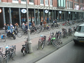 オランダのアムステルダムに移動です。街中の歩道には、自転車がぎっしり