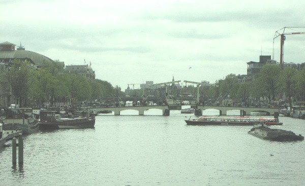 アムステルダムに架かる、有名な「マヘレのはね橋」が見えます