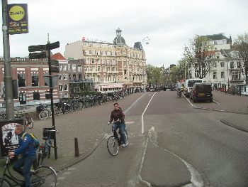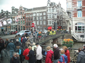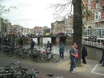 どこの歩道も、自転車で一杯。運河沿いをあるきました。団体さんは欧州人