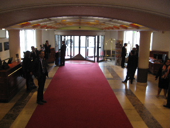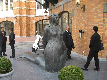 ホテルの玄関先の、マーメイドの付近には、SPが一杯。ホールの中も。そうなんです