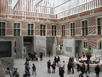 広いホールと回廊。フェルメールの「牛乳を注ぐ女」「手紙を読む青衣の女」