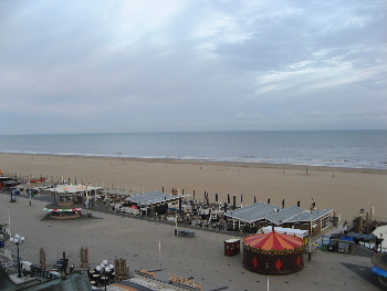 ホテルの裏側は海。海岸に沿って道路が走り、浜辺には飲食店がぎっしり
