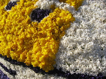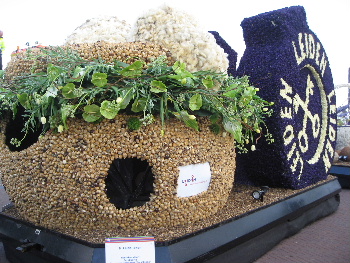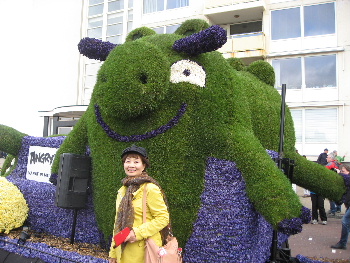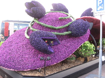 ヒヤシンスでびっしり埋めつくされた、牛の顔。この巨大さは半端じゃない
