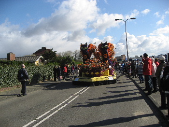 20の巨大な山車と30台の車が夜9時ごろまでかかり、パレードします。それぞれ