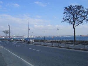ヨーロッパ大陸側の道路を内海、マルマラ海を見ながら