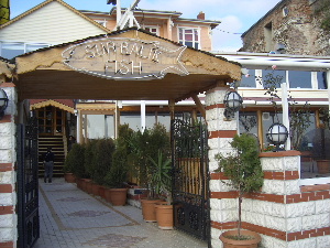 進むと、お魚料理が売り物の、レストラン街に着く .