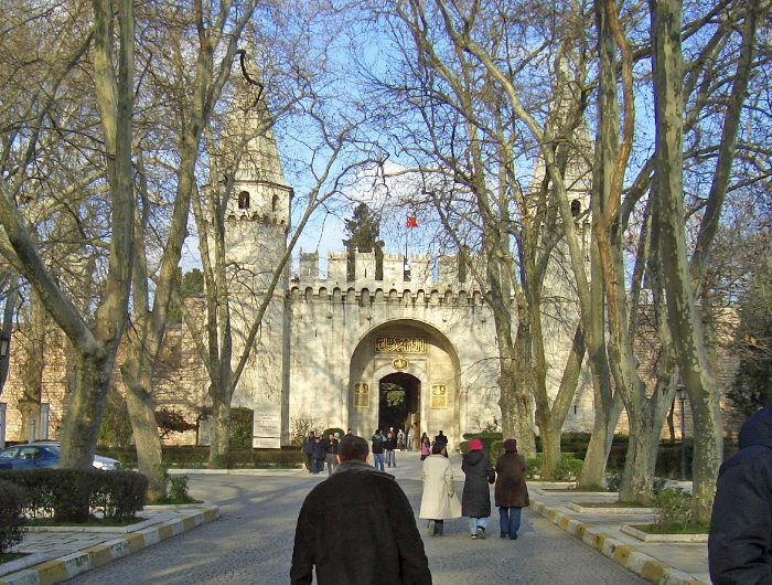 トプカプ宮殿にやって来ました、皇帝の門はバスが本当にぎりぎり通れる