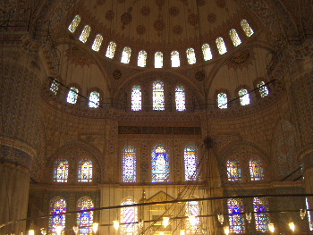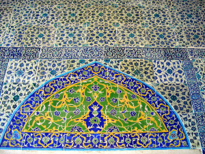 の女性達の礼拝場の壁面は、最も見事な「ブルー」のタイルで埋め