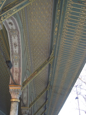 枢密院の庇部分、壁も庇裏も、とても素敵な淡いトーンの彩色、感激!