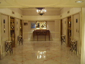 壁面は、ブルーのステンドグラスにより、幻想的な雰囲気を かもし出す