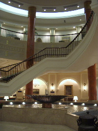 ホテルの全景、大きすぎて全部入らない、ホテル 中央ドームの天井