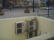 地下道の壁には 「ダイキン」「三菱」「富士通」のエアコン室外機が