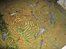 毒が混入されないように、鯉を放流して確認していたとか、中央写真