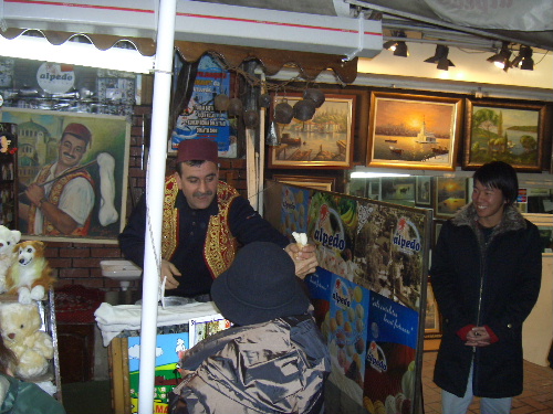 船着場への道で、伸びるトルコアイス屋さんが、店を出していた。