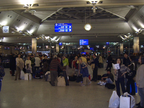 L階で出発の前集合時に、歓談の一時、帰りはお土産で荷物は一杯