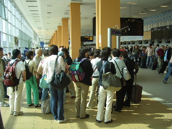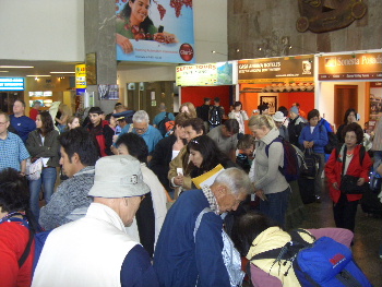 リマ空港はやはり人が多い。クスコへ飛ぶ日本人ツアーが数グループ