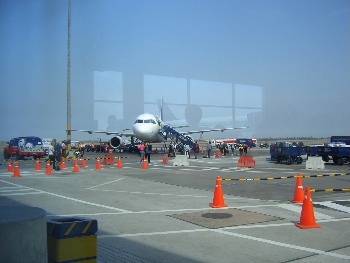 ブースは開放的?排気ガス吸い放題!管制搭がそびえる空港に到着