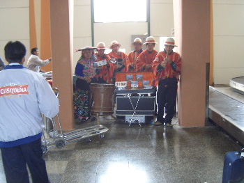 到着ロビーでは、フォルクローレの楽団が演奏でお出迎え!いまいち