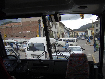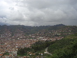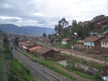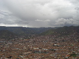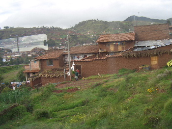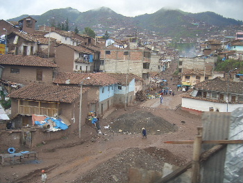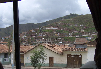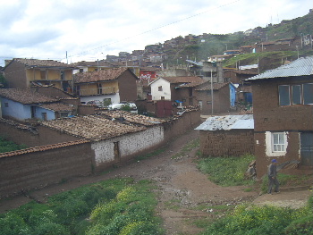 クスコの町は坂が多い、車窓から写る景色は 山の傾斜に家・家・家