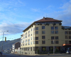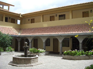 ホテルの全景と中庭、これでもクスコ一のホテルとか?雰囲気はゆったり