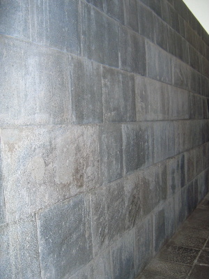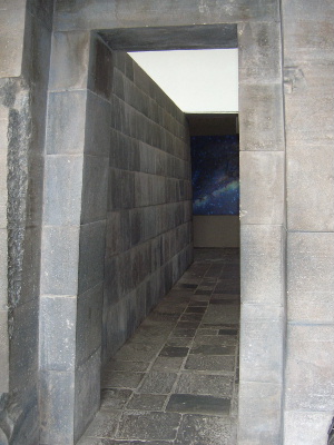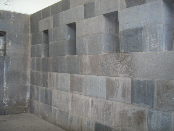 通路の壁、凸凹がない、とにかく驚きばかり、屋根のない神殿の中央に