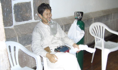 酸素を3分間吸うようにと言われ、無様な姿を敢えて撮ってもらった、添乗員さ
