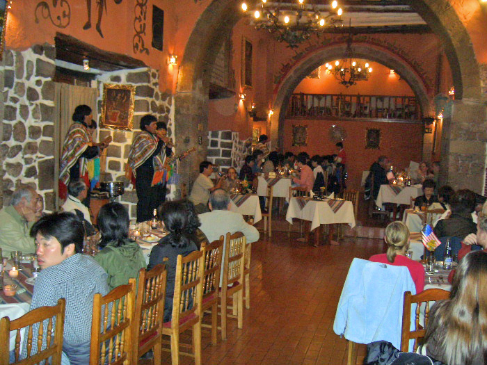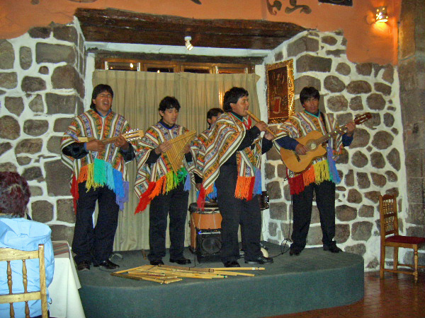 は即蘇る!フォルクローレを聞きながらの、夕食に出かけた。高山病第一