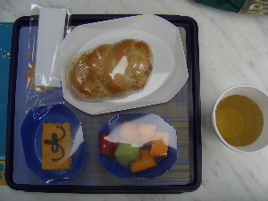 機内食ならぬ、列車食を、美人の車掌さん?が配膳してくれる、本当に