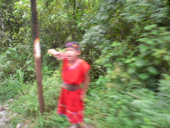早く駆け降り、先回りして 手を振るのである、なんと すごい傾斜だこと