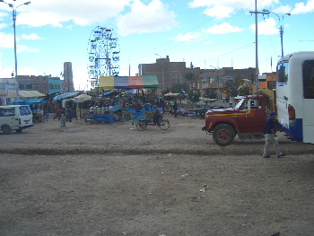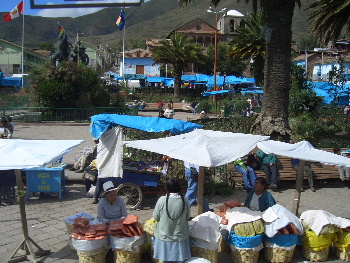 途中ウルコス町があった、日曜日とあってそこここに市があり、人でにぎやか